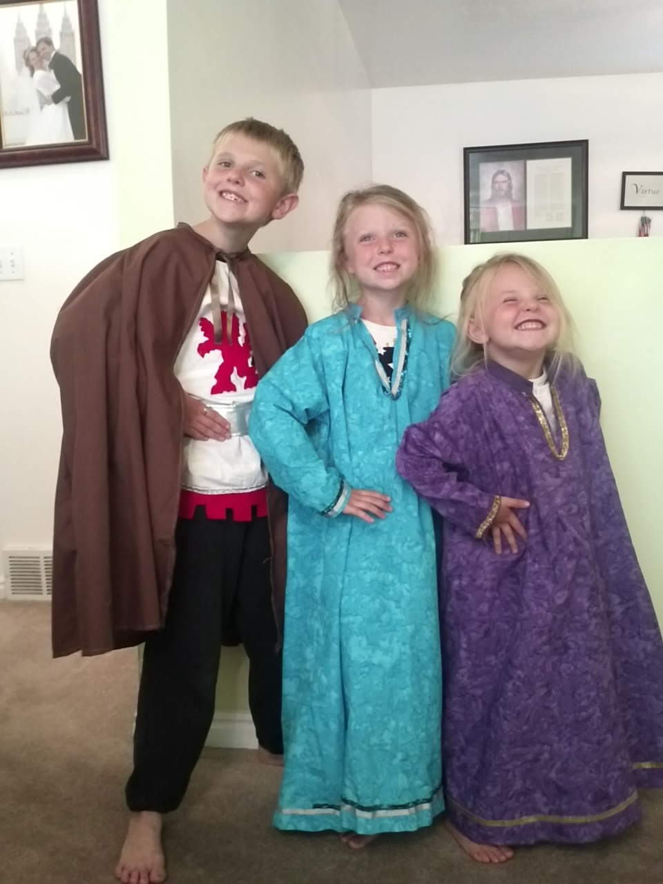 And I have been burning up my sewing machine making history costumes for the kids. (We'll be studying the medieval and Renaissance time periods, in case you couldn't tell.)